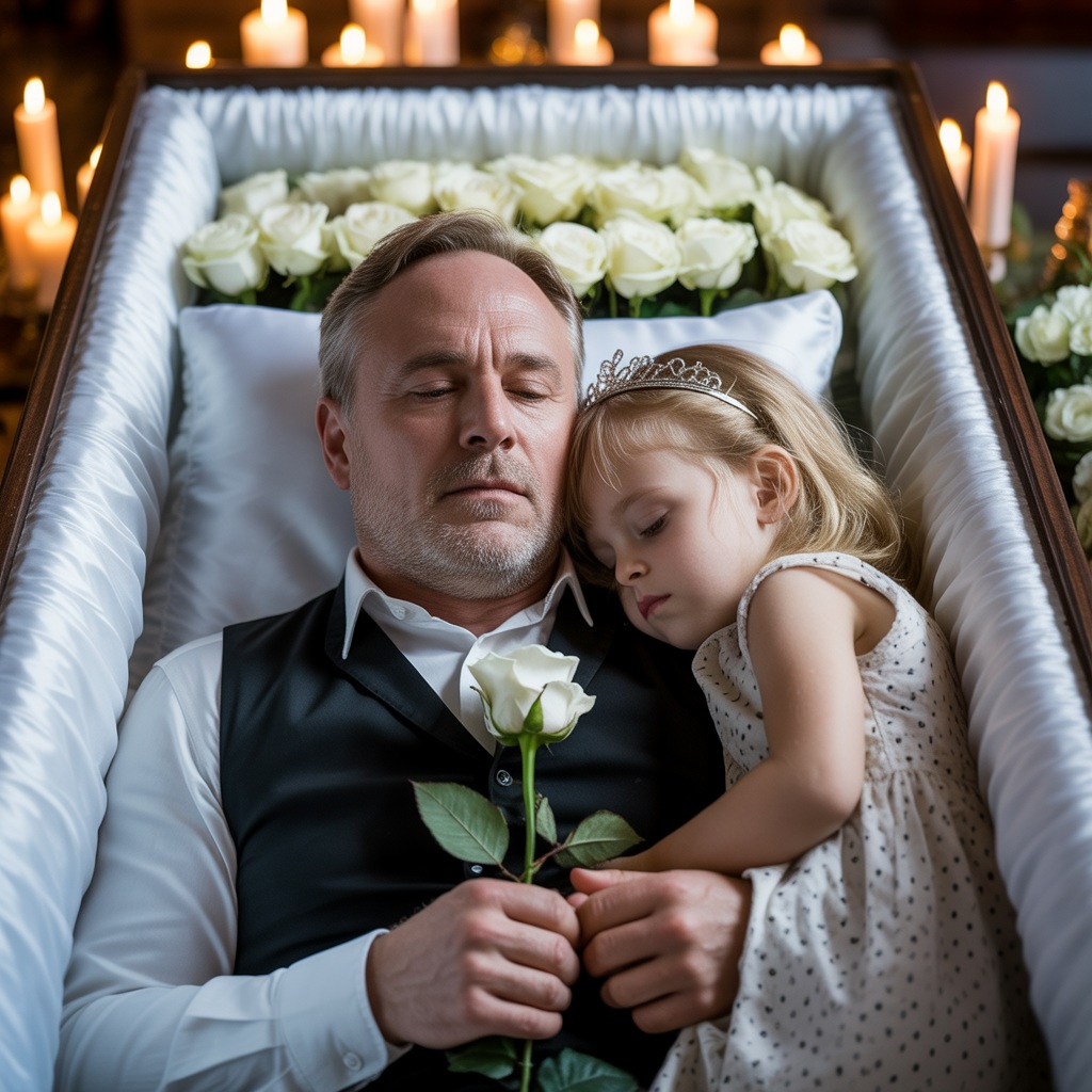 En el velorio de mi padre, la habitación estaba impregnada del olor a lirios y de sollozos apagados. Mi hermana Lily, de ocho años, permanecía de pie junto al ataúd sin moverse. No lloraba, apenas parpadeaba; solo miraba su rostro inmóvil, como si esperara que respirara de nuevo.