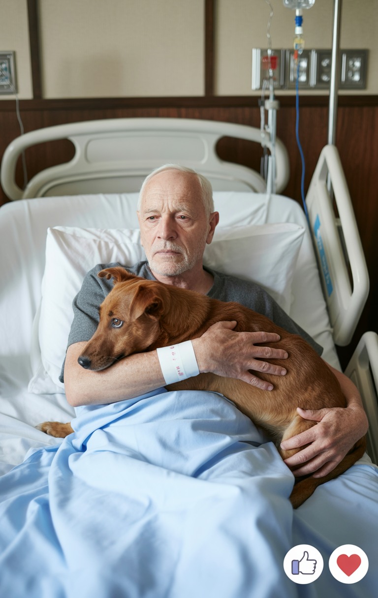 El perro saltó a la cama con torpeza, acomodándose junto a su pecho. Lloriqueaba bajito, empujando su hocico contra la mano frágil de su dueño.