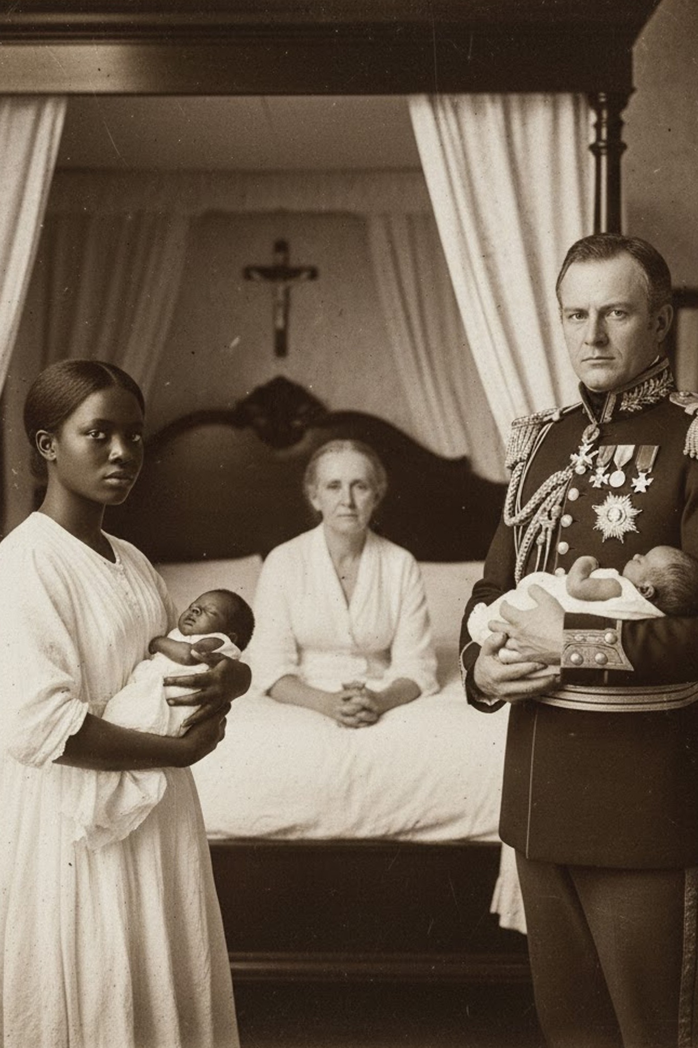 La noche del 15 de marzo de 1811 llegó envuelta en un silencio denso, casi irreal. No había luna, y las nubes cubrían cualquier rastro de luz. En la casa principal de la Hacienda Mendoza, los criados iban y venían con agua caliente, telas limpias y órdenes susurradas. Doña Elena gritaba entre contracciones, atendida por una partera traída desde Caracas. A pocos metros, en una pequeña habitación sin ventanas, María de los Santos daba a luz sola, asistida únicamente por una esclava anciana.