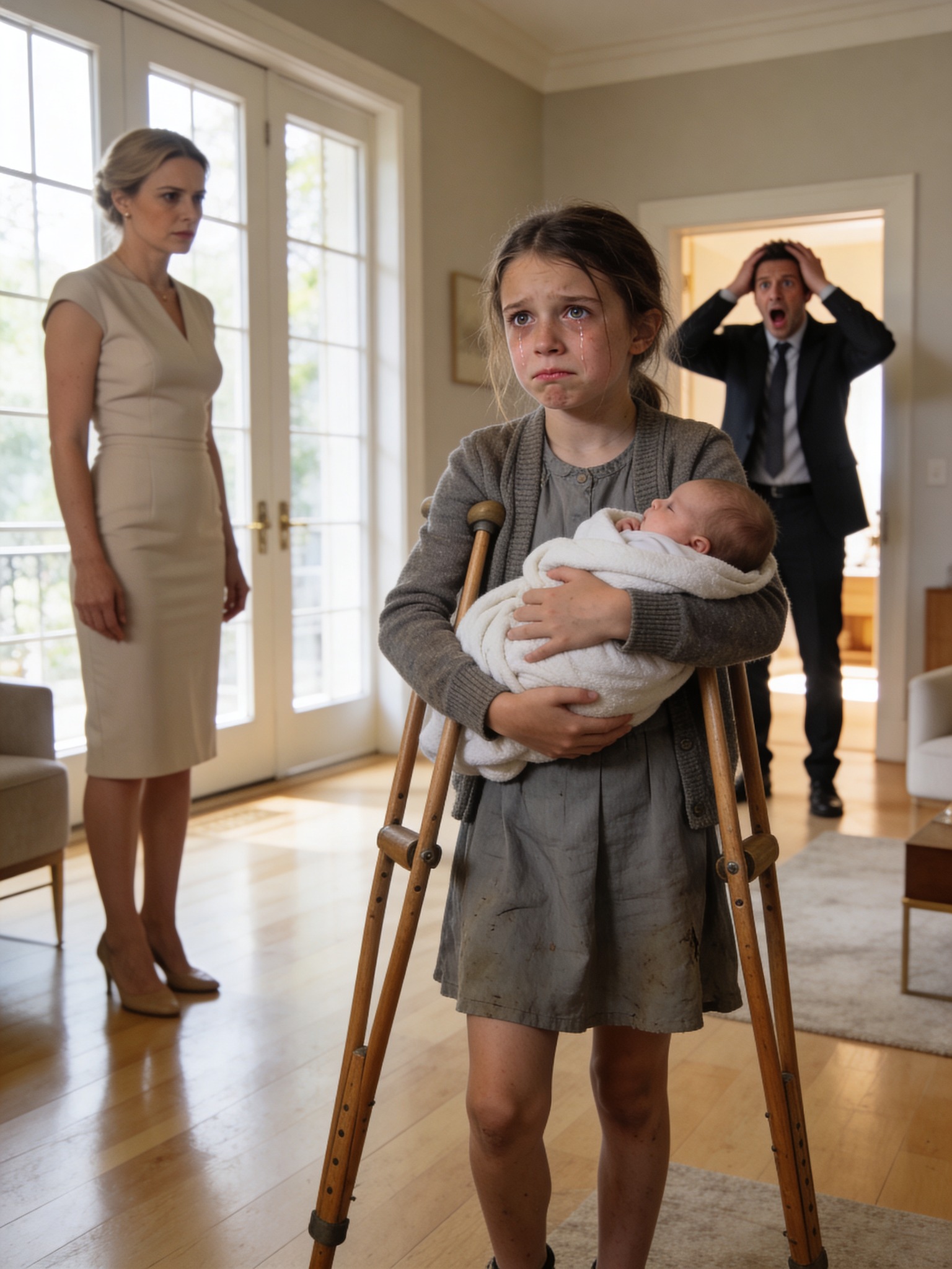 Volvió a casa de un viaje de negocios y encontró a su hija arrastrando a su hermanito por el suelo. Le susurró: «Que no sepa que estás aquí…».