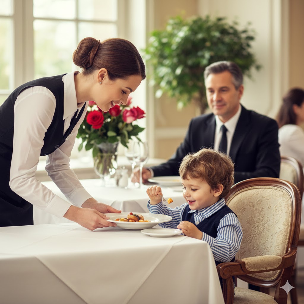 Fue entonces cuando una mesera joven se acercó con pasos cuidadosos. No llegó con prisa ni con el tono perfecto que entrenan en restaurantes de lujo. Llegó como quien se acerca a un animal herido: con respeto.