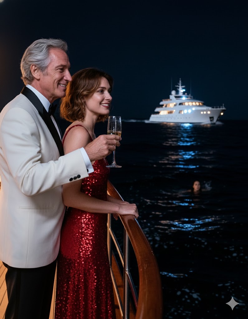 Esa noche, el mar estaba negro y tranquilo. Claire me pidió que fuera a la popa para mirar las luces en el agua. Recuerdo estar riendo, el zumbido del motor, el olor a sal. Entonces, sus manos empujaron mis hombros. Con fuerza.