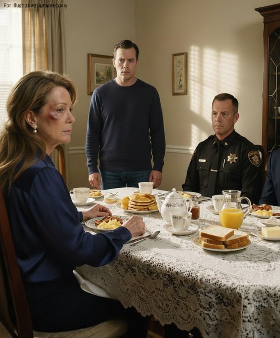 Mi hijo me dio una paliza anoche y no dije nada. Esta mañana, extendí mi mantel de encaje, preparé un desayuno sureño completo y saqué la porcelana fina como si fuera un día festivo. Cuando bajó, echó un vistazo a las galletas y la sémola, sonrió con suficiencia y dijo: «Parece que por fin aprendiste». Pero la sonrisa se desvaneció en cuanto vio quién estaba sentado a la mesa.
