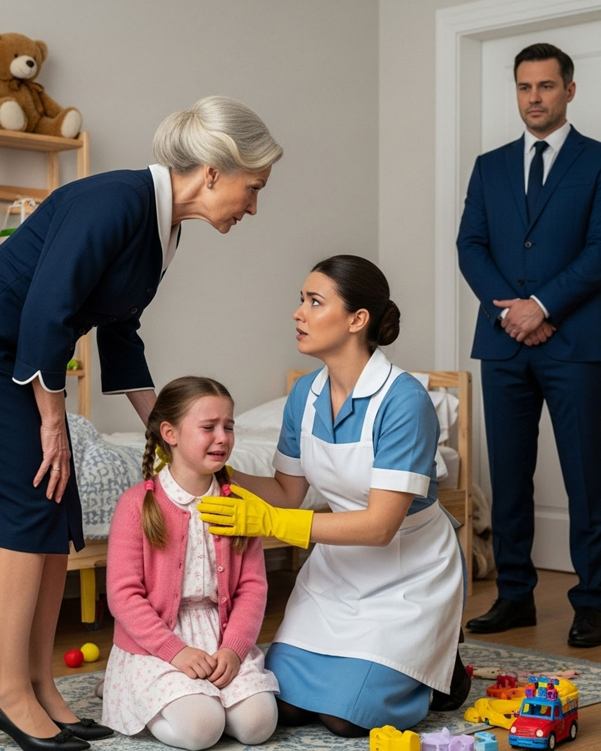 Rebeca obliga a Paloma a limpiar el piso con sus propias manos, sin trapo, sin nada. Las lágrimas escurren por el rostro de Paloma, pero no se rinde. El lugar de los pobres es de rodillas. Aprende de una vez. El ruido de la puerta principal abriéndose hace eco por la casa. Alejandro Montemayor sube la escalera y se para en la puerta del cuarto.