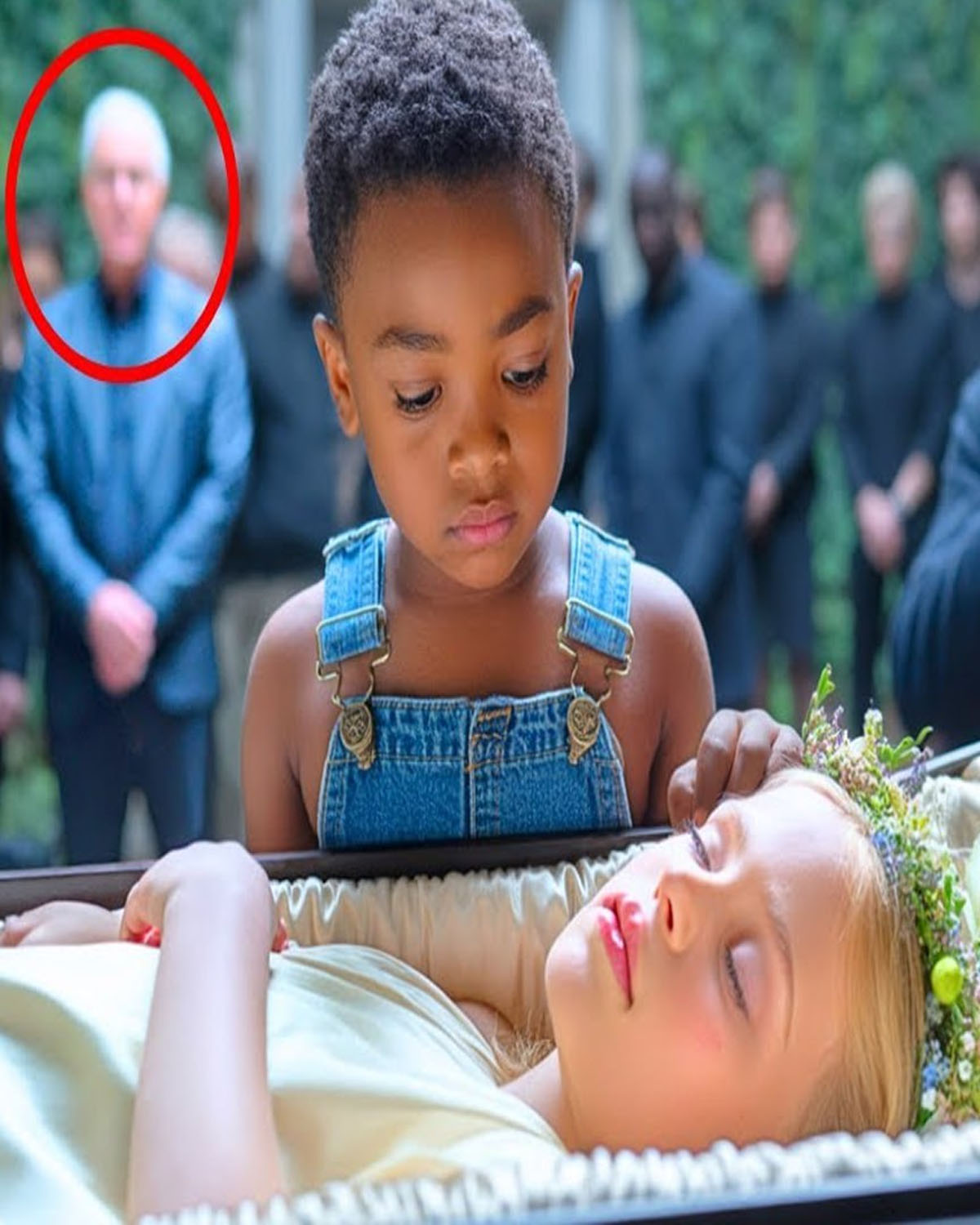 En el momento más triste del funeral, un niño de la calle apareció de la nada, caminó hasta el ataúdre de la niña fallecida, “El asesino de tu hija está allá atrás.” El hombre se quedó paralizado y lo que sucedió después se convirtió en una verdadera pesadilla. El dolor parecía no caber dentro de aquella sala. El cuerpo de la pequeña Alicia, de apenas 8 años, yacía inmóvil en un ataúd blanco de satén dorado, decorado con una rosa pálida y una delicada corona de flores sobre su cabello rubio.