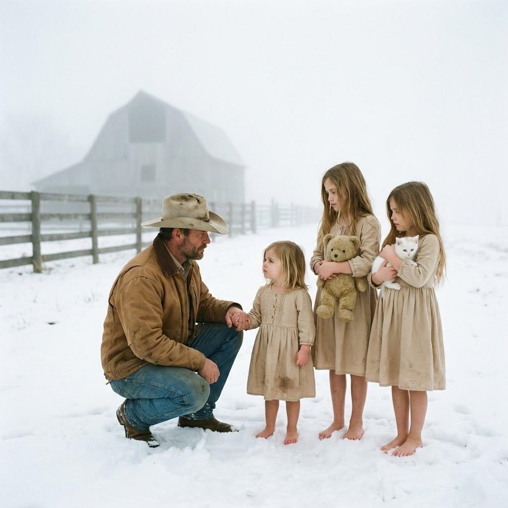 Aquella mañana blanca, el silencio se quebró con un golpe tímido en la puerta. Tomás estaba inclinando el café cuando escuchó el segundo golpe, más débil, como si el visitante temiera que abrir fuera un error. Al abrir, el aire le cortó la cara y el porche parecía un pedazo de mundo congelado. Allí, sobre la nieve, temblaban tres niñas.