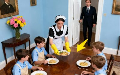 ¿Cómo es posible que en la mansión más lujosa de Las Lomas, donde el silencio se compraba con millones, un simple plato de arroz amarillo revelara la mentira que mi difunta esposa se llevó a la tumba? Regresé a casa antes de tiempo y no encontré a mis empleados trabajando, sino a cuatro niños idénticos a mí sentados en mi propia mesa, comiendo como si fuera su último banquete; una sola mancha de nacimiento en forma de hoja fue el sello de una verdad que me destrozó el alma, revelando que mi vida entera había sido un teatro de sombras y que el mayor tesoro de mi sangre había estado escondido en mi propia cocina durante años.