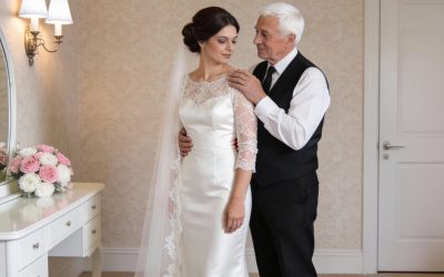 The bride stepped into the bathroom, the polished floors gleaming under the warm chandeliers, the scent of fresh flowers mingling…