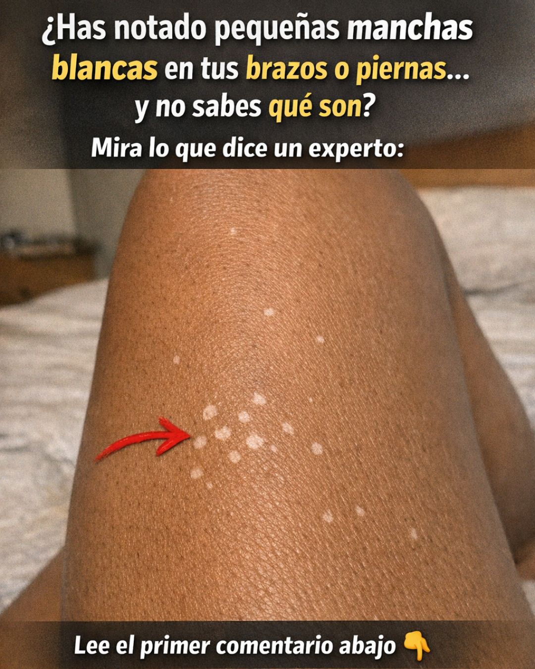 Son pequeñas manchas blancas redondas (2-6 mm) en brazos, piernas, espalda y manos.