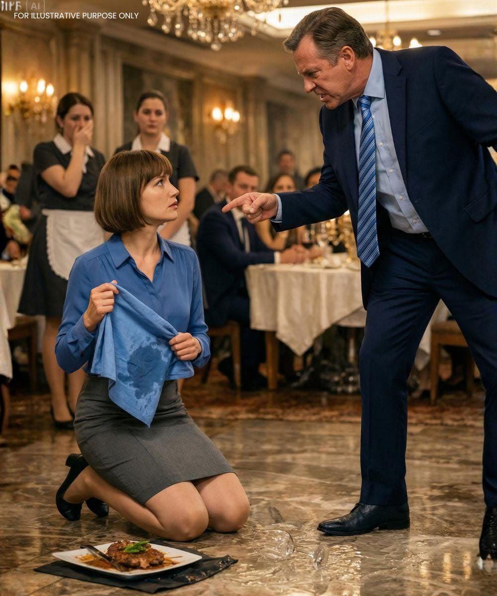 El filete de Wagyu yacía en el suelo. El plato estaba hecho añicos. La salsa roja se había extendido, manchando el mármol como una herida.