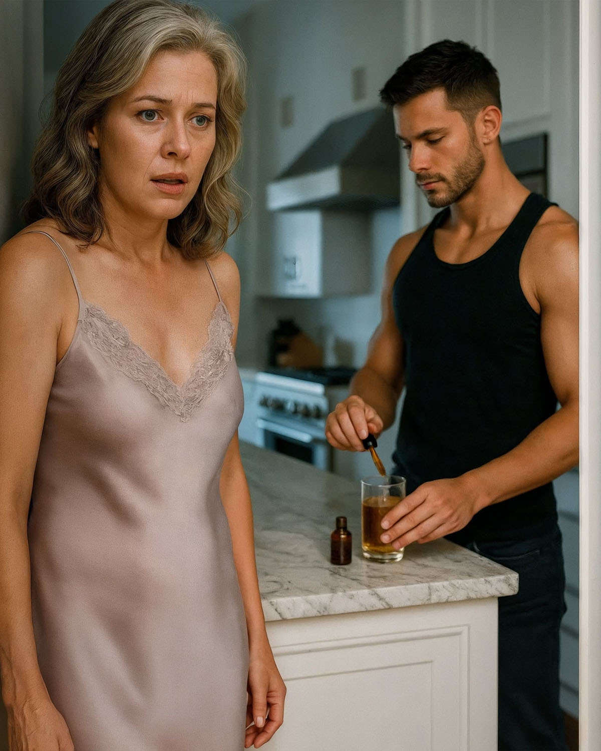 La pequeña esposa Anuncio Me llamo Lillian Carter y tengo cincuenta y nueve años. Hace seis años, me casé con un hombre llamado Ethan Ross, que solo tenía veintiocho años en la época, treinta y un años menos que yo. Nos conocimos en una clase de yoga suave en San Francisco. Acababa de jubilarme de la enseñanza y luchaba contra dolores de espalda y ese silencio que se instala cuando has perdido a alguien que amas. Ethan era uno de los profesores: amable, paciente, con esa seguridad tranquila que hacía que toda la sala respirara más despacio. Cuando sonreía, el mundo parecía ralentizarse. Me advirtieron desde el principio: «Él quiere tu dinero, Lillian. Estás sola. Ten cuidado». Sí, había heredado una vida cómoda de mi difunto marido: una casa urbana de cinco plantas en el centro, dos cuentas de ahorro y una villa frente al mar en Malibú. Pero Ethan nunca me pidió dinero. Cocinaba, limpiaba, me daba masajes y me llamaba su «pequeña esposa» o su «bebé» con esa voz dulce que era la suya. Cada noche antes de dormir, me traía un vaso de agua tibia con miel y manzanilla. «Bébelo todo, cariño», susurraba él. «Te ayuda a dormir. No puedo descansar si tú no descansas». Así que yo bebía. Durante seis años, creí haber encontrado la paz: un amor dulce, estable, que no esperaba nada a cambio.
