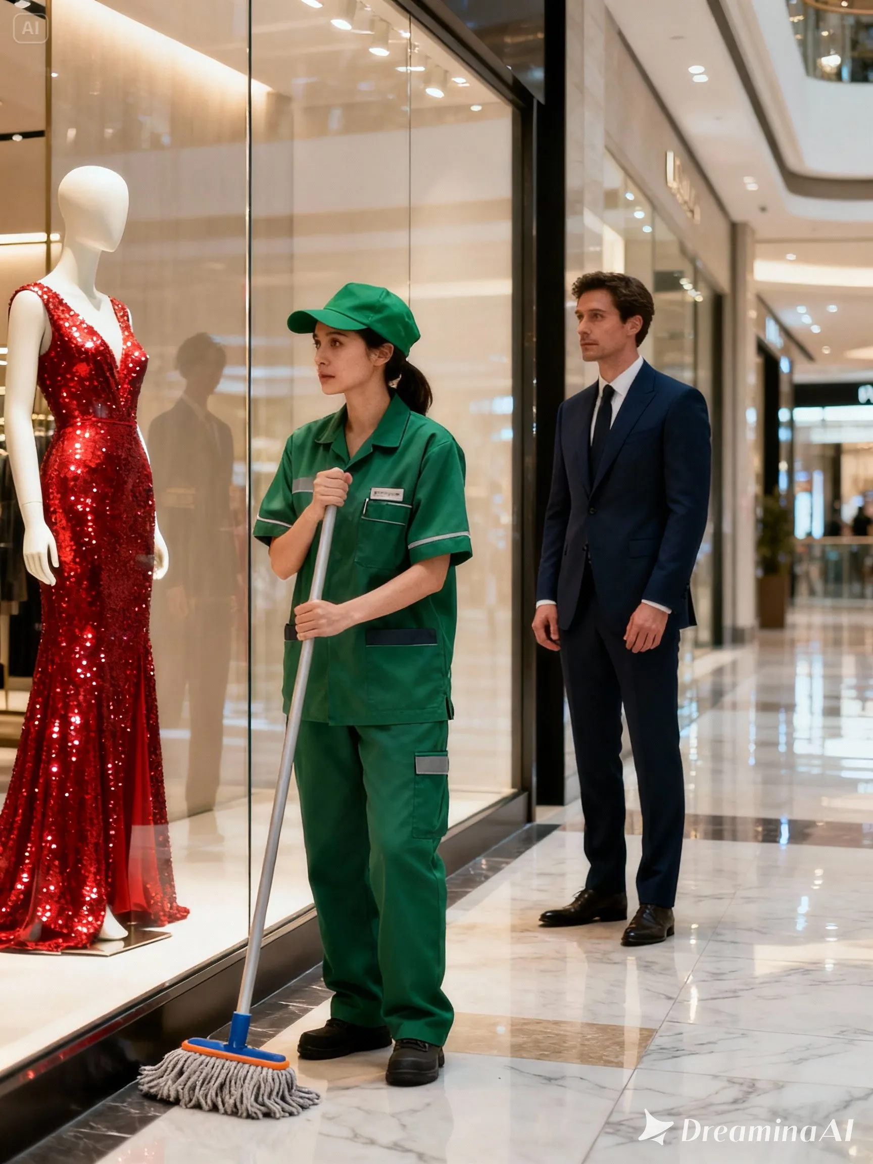 Frente a un escaparate con una colección exclusiva, había una mujer inmóvil.
