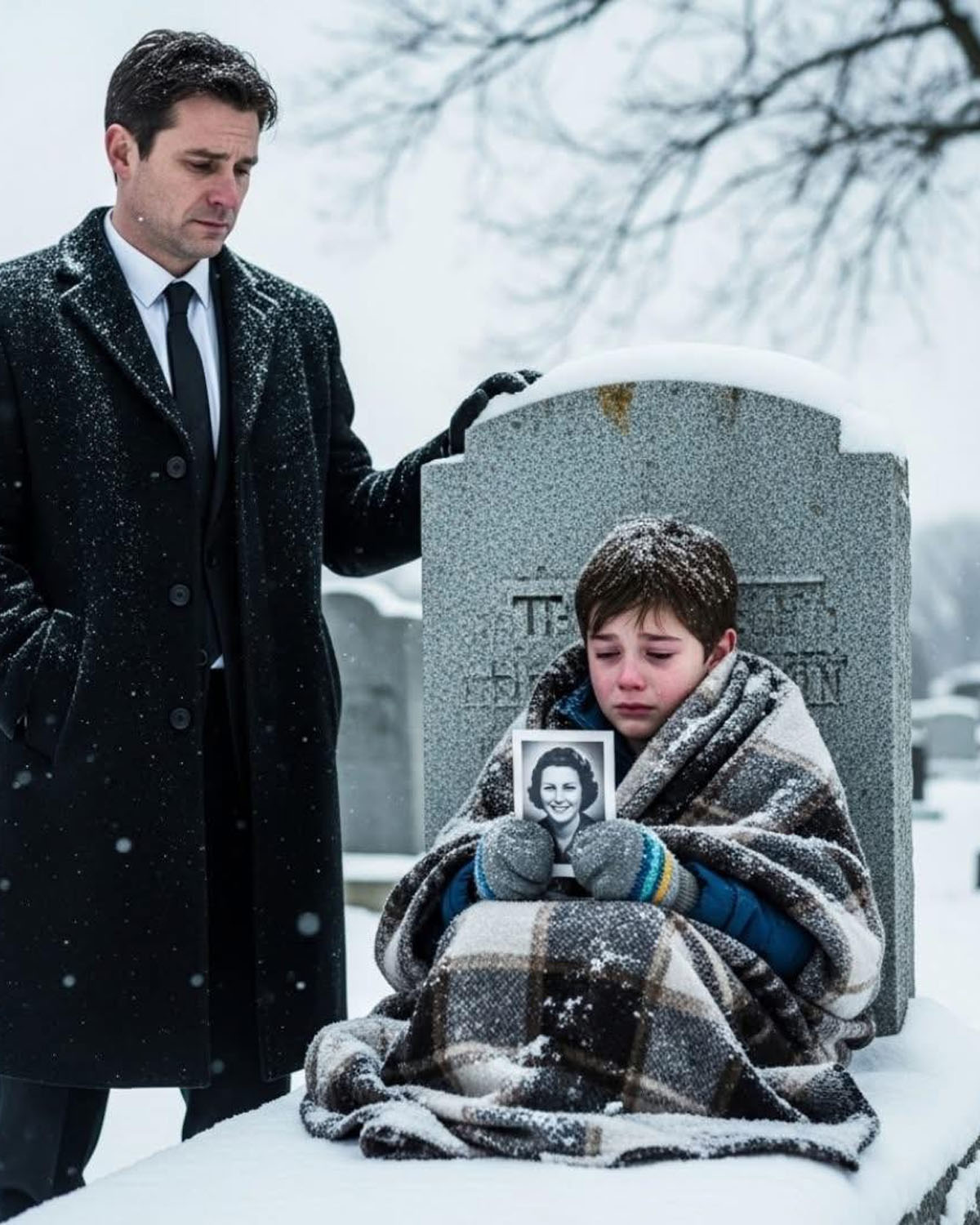 Daniel se detuvo abruptamente, su respiración se atascó en su garganta. Un niño, un niño, no más de nueve o diez años, estaba sentado contra la lápida de Elena. Envuelto firmemente en una manta a cuadros espolvoreada con nieve, la cara del niño estaba roja por el frío, sus ojos hinchados por el llanto. En sus manos enguantadas, agarró una foto desgastada en blanco y negro.