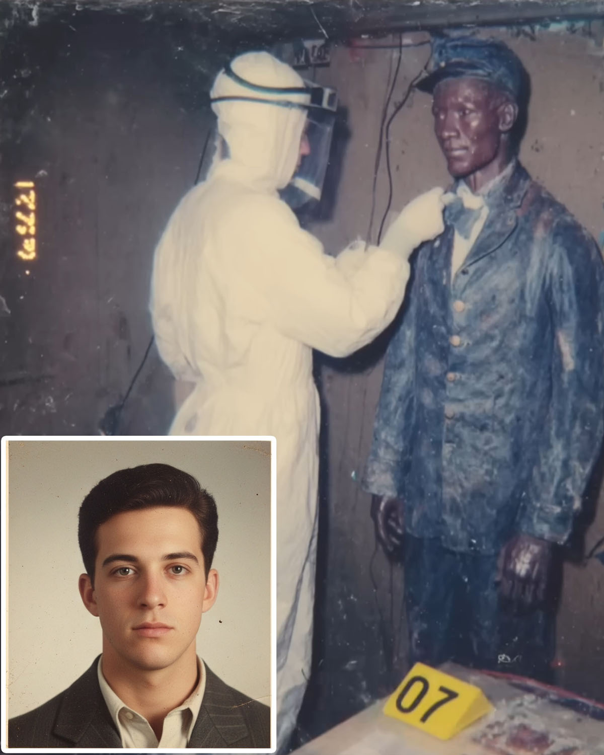 En cuestión de horas, el museo fue acordonado con cinta amarilla. La policía inundó la escena, con sus radios zumbando. La “figura de cera”, resultó ser, no era cera en absoluto. Era un hombre momificado, preservado por décadas de aire seco y capas de goma laca aplicadas por curadores bien intencionados.