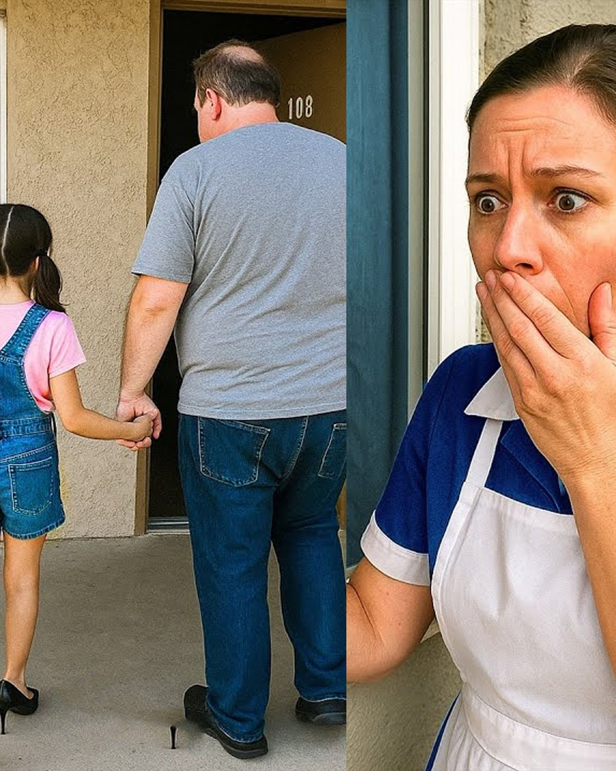 Alto, bien afeitado, educado. Llevaba pantalones caqui y un polo, el tipo de hombre que a Angela le pareció un típico padre de los suburbios. Con él iba una niña que no podía tener más de once años. Cabello rubio, mochila rosa, callada. Nunca dijo una palabra en la recepción. El hombre firmó el registro con el nombre de «Daniel Harper» y pidió la habitación 112. Solicitó que las cortinas permanecieran cerradas y pidió a Angela que no entrara a limpiar. Eso no era inusual (muchos huéspedes querían privacidad), pero algo en su voz era agudo, casi ensayado.